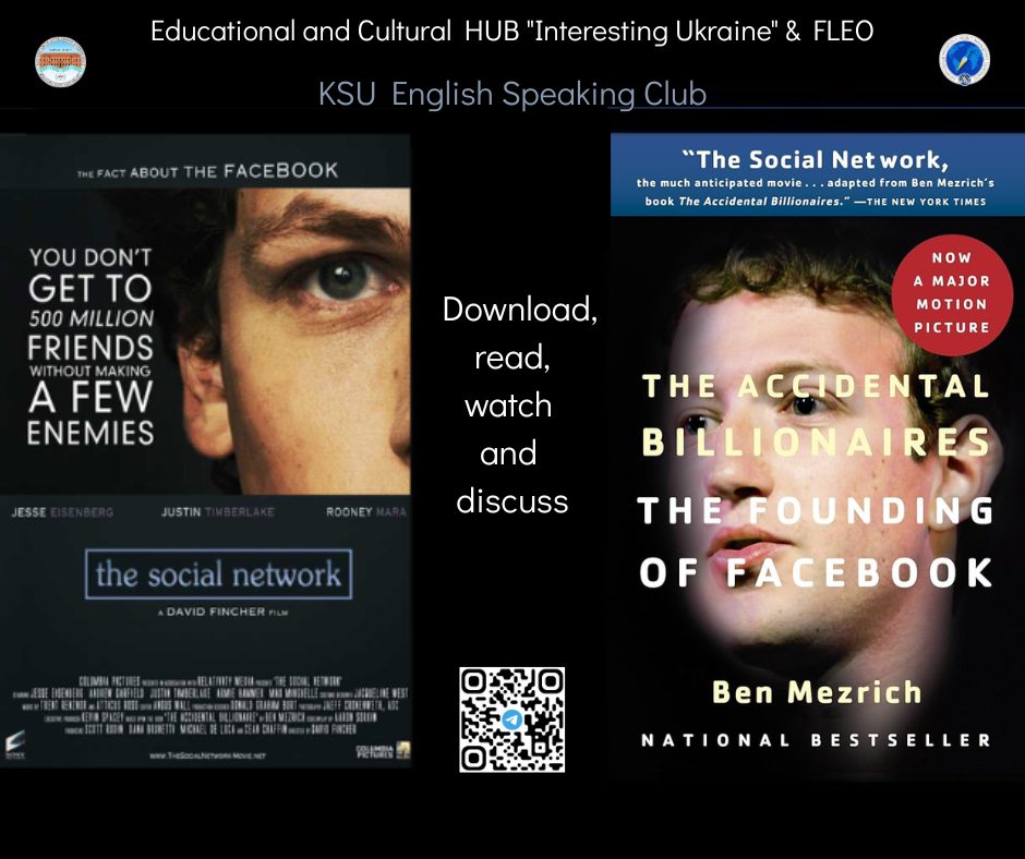 So, we invite you to read a fascinating story about the friendship of Harvard students, their ambitions, betrayal and innovation - The Accidental Billionaires. The Founding of Facebook" by Ben Mezrich. Read the story in English this month, watch its film adaptation The Social Network, and join us for a discussion and exchange of impressions in early May!