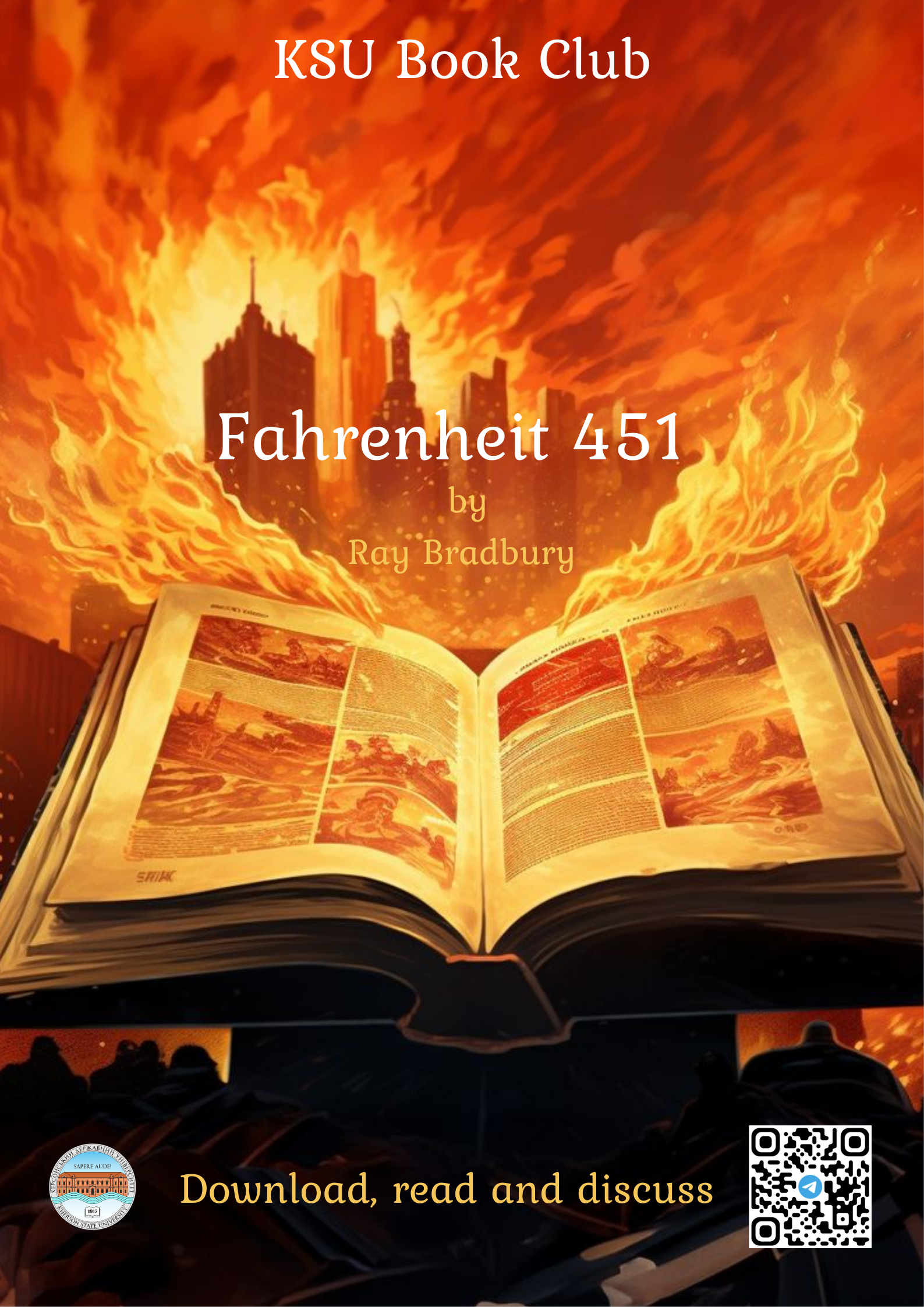 We are pleased to announce that for the book club members who have read Ray Bradbury's Fahrenheit 451 this month, the final KSU Book Club meeting this semester to discuss it will be held on Tuesday, 03.06 at 16.00.