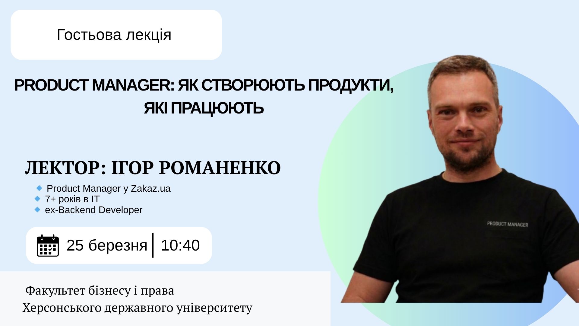 На факультеті бізнесу і права відбулася гостьова лекція Product Manager компанії Zakaz.ua Ігоря Романенка на тему «Product Manager: як створюють продукти, які працюють»