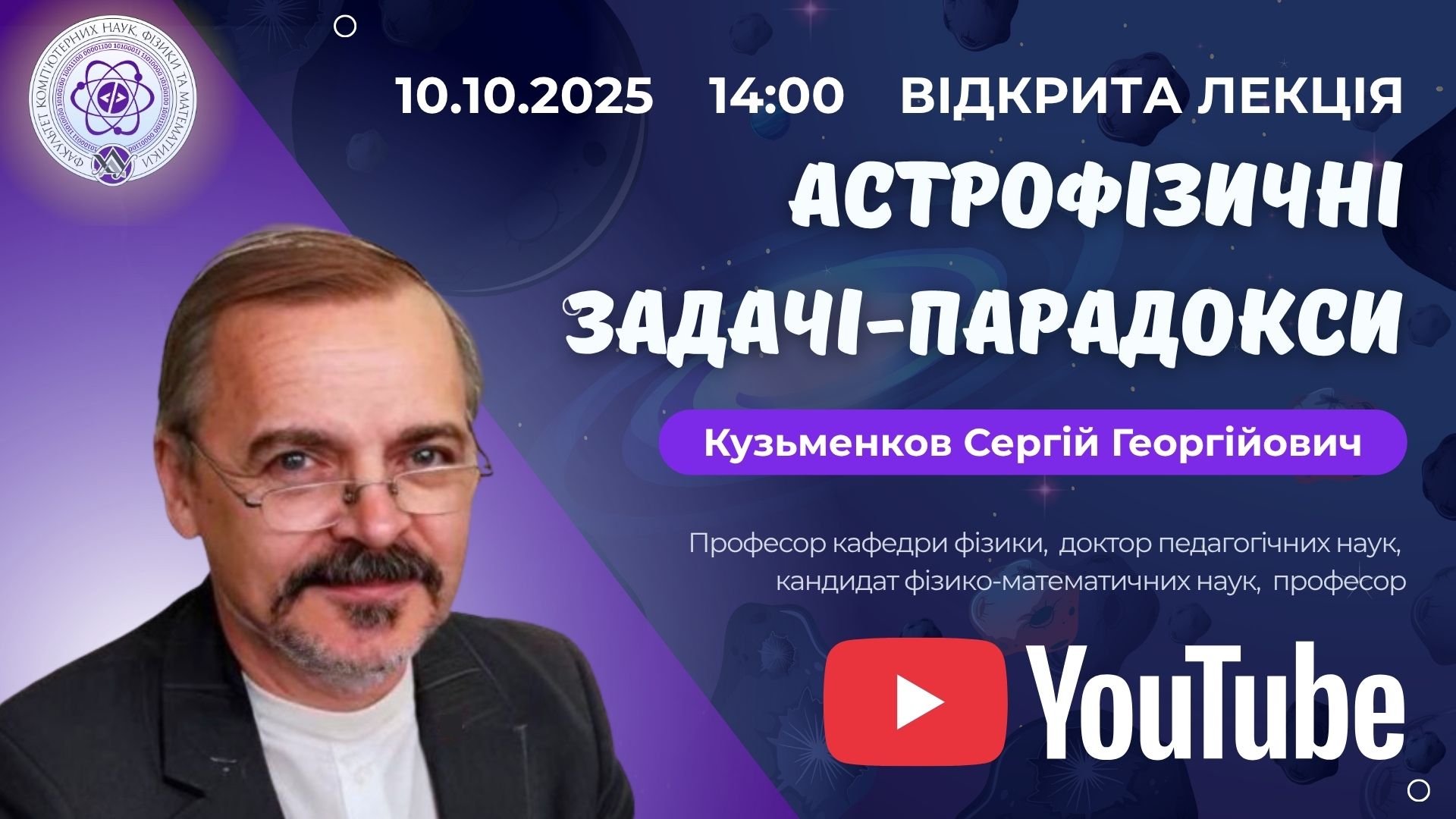 10 жовтня 2025 року на факультеті комп'ютерних наук, фізики та математики відбулася Відкрита лекція «Астрофізичні задачі-парадокси». Захід, який проходив у форматі онлайн-зустрічі, зібрав викладачів, студентів ХДУ, а також учнів і педагогів зокрема Херсонського наукового ліцею.