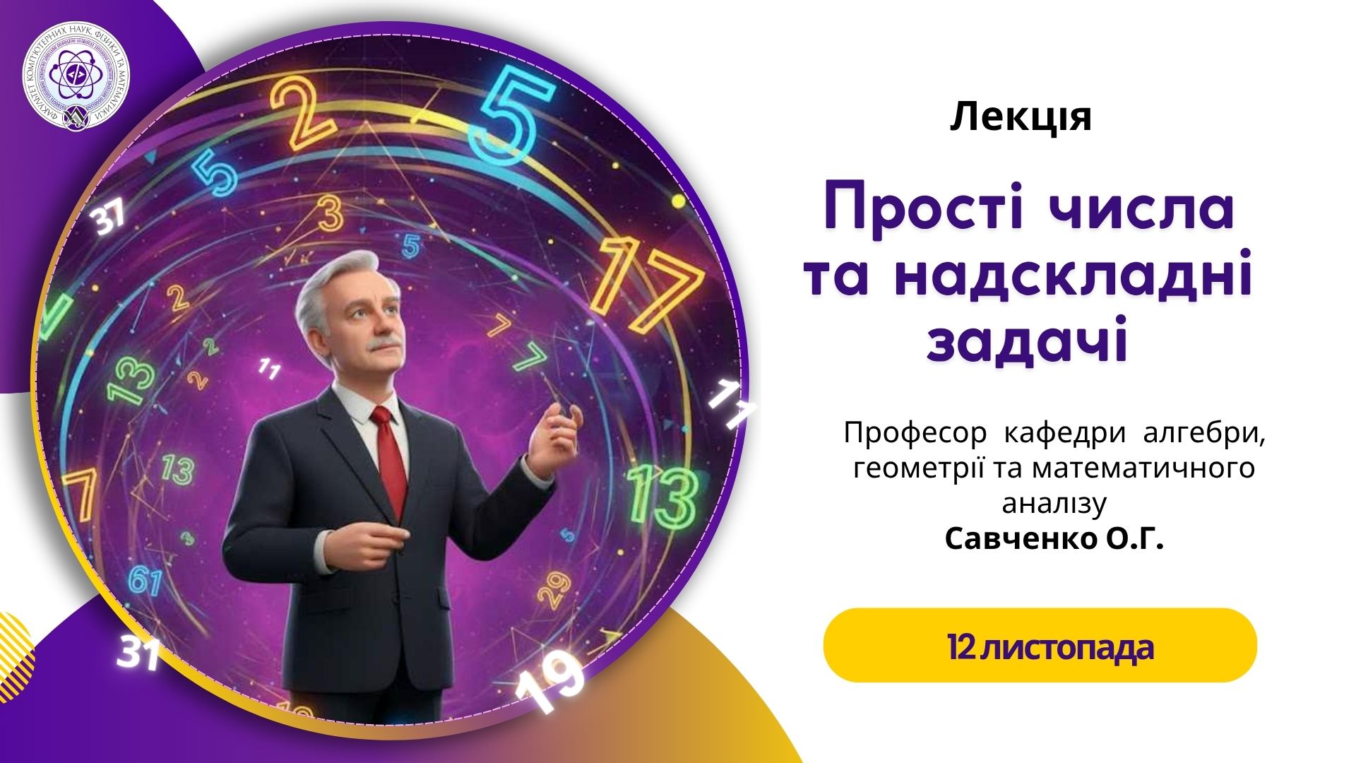 On November 12, 2025, an engaging open lecture on the topic "Prime Numbers and Ultra-Complex Problems" took place at the Faculty of Computer Science, Physics, and Mathematics. The event gathered faculty members and students, as well as alumni of the "Secondary Education (Mathematics)" educational program from previous years.