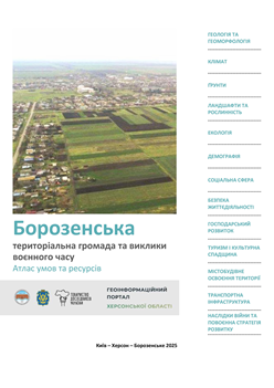 Борозенська територіальна громада та виклики воєнного часу. Атлас умов та ресурсів» Заг. ред. П. Остапенко, Д. Мальчикової; авт. кол.: П. Остапенко, Д. Мальчикова, І. Пилипенко та ін.