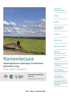 «Калинівська територіальна громада та виклики воєнного часу. Атлас умов та ресурсів» Заг. ред. П. Остапенко, Д. Мальчикової; авт. кол.: П. Остапенко, Д. Мальчикова, І. Пилипенко та ін.