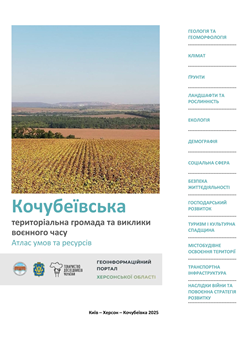 «Кочубеївська територіальна громада та виклики воєнного часу. Атлас умов та ресурсів» Заг. ред. П. Остапенко, Д. Мальчикової; авт. кол.: П. Остапенко, Д. Мальчикова, І. Пилипенко та ін.