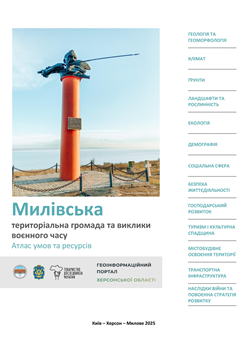 «Милівська територіальна громада та виклики воєнного часу. Атлас умов та ресурсів» Заг. ред. П. Остапенко, Д. Мальчикової; авт. кол.: П. Остапенко, Д. Мальчикова, І. Пилипенко та ін.