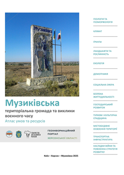 «Музиківська територіальна громада та виклики воєнного часу. Атлас умов та ресурсів» Заг. ред. П. Остапенко, Д. Мальчикової; авт. кол.: П. Остапенко, Д. Мальчикова, І. Пилипенко та ін.