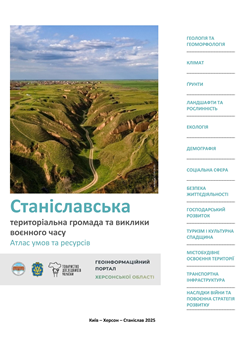 «Станіславська територіальна громада та виклики воєнного часу. Атлас умов та ресурсів» Заг. ред. П. Остапенко, Д. Мальчикової; авт. кол.: П. Остапенко, Д. Мальчикова, І. Пилипенко та ін.