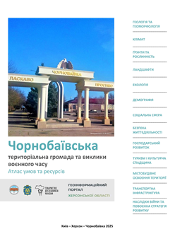 Чорнобаївська територіальна громада та виклики воєнного часу. Атлас умов та ресурсів» Заг. ред. П. Остапенко, Д. Мальчикової; авт. кол.: П. Остапенко, Д. Мальчикова, І. Пилипенко та ін.