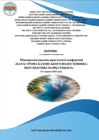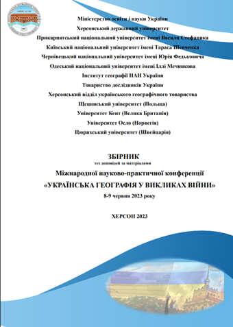 Збірник МНПК Українська географія у викликах війни_Збірник тез доповідей 8-9 червня 2023.pdf (2 Mb) Збірник тез КАХ вдсх РІК 2024.pdf (3.3 Mb) Збірник тез МНПК Катастрофа Каховського водосховища 2025.pdf (1.8 Mb)