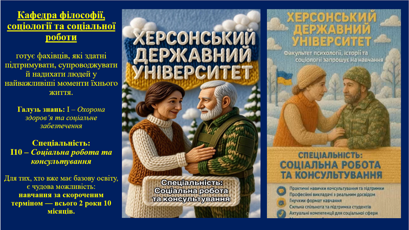 13 листопада 2025 року гарант освітньої програми “Соціальна робота та консультування” першого (бакалаврського) рівня вищої освіти, кандидат педагогічнних наук доцент Швець Т.М. разом з головою студентської ради факультету, здобувачем 3 курсу спеціальності “Соціальна робота” Євсюковим Р. взяли участь у профорієнтаційному заході “Соціальна робота: професія та місія життя”, організатором якої стала адміністрація Великолепетиського ліцею Херсонської області.