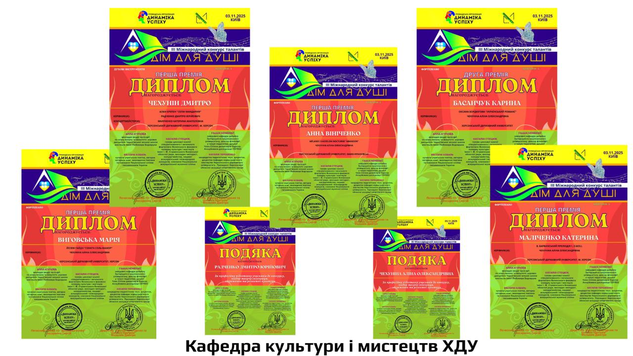 Студенти кафедри культури і мистецтв Херсонського державного університету спеціальності 025 «Музичне мистецтво» продемонстрували високий рівень майстерності та вибороли: