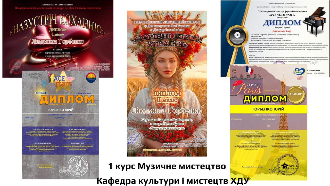 Студенти кафедри культури і мистецтв Херсонського державного університету спеціальності 025 «Музичне мистецтво» продемонстрували високий рівень майстерності та вибороли: