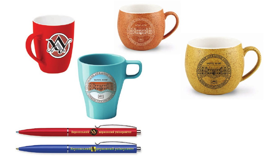 У рекламній продукції - сувенірах, як то ручках, календарях, футболках, бейсболках, кружках та ін. можна використовувати усі види логотипів та графічних елементів ХДУ, окремо або або разом з належним текстом чи фотозображеннями