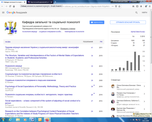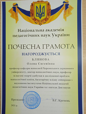 Блинову Олену Євгенівну, доктора психологічних наук, професора, завідувача кафедри психології.