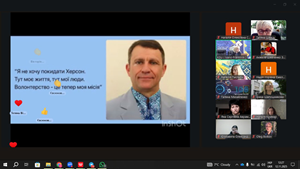 «Складно підібрати слова подяки для людей, які віддають частину свого життя допомозі іншим. Це унікально і визначає нашу націю. Ми опинилися у нестандартній ситуації: швидко потрапили під окупацію. Те, що робили наші волонтери під час окупації та після звільнення Херсона, після руйнування Каховської ГЕС, а сьогодні – навіть під обстрілами допомагають і рятують людей, є справжнім проявом мужності. І тому такі заходи – надзвичайно важливі, оскільки дають змогу показати історії цих героїчних людей. І дякую факультету психології, історії та соціології на чолі з Іриною Шапошникою за реалізацію проєкту».