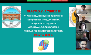 On April 23, the VI International Scientific and Practical Conference of Young Scientists, Postgraduates and Students "Socio-Psychological Technologies of Personality Development" was opened. The scientific event was organized on the initiative of the Department of Psychology of Kherson State University, with the participation of specialists of the Social and Psychological Service.