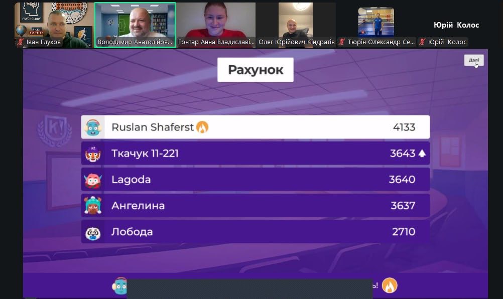 Провели інтерактивну Kahoot-вікторину на тему: «Тренуємо тіло, як тренуємо знання. Готові до будь-яких викликів!