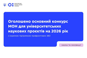 Оголошено основний конкурс МОН для університетських наукових проєктів на 2026 рік з окремою підтримкою прифронтових ЗВО