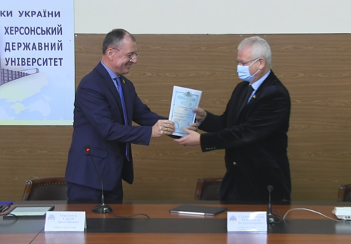 Нещодавно університет отримав від Посла Казахстану в Україні Дархана Калєтаєва лист зі словами вдячності колективу університету за сприяння у пошуку фактів перебування на Херсонщині казахів, репресованих у 1920-1940-х роках. Під час засідання ректор урочисто передав подяку керівниці музейно-архівного центру ХДУ Ірині Самсаковій.