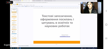 8 листопада 2023 року співробітники Наукової бібліотеки ХДУ долучились до вебінару «Як правильно оформити запозичення з інших джерел» від КПІ ім. Ігоря Сікорського. Захід відбувся в межах курсу відкритих лекцій «Академічна ДоброЧесність: правила гри чи справа честі».