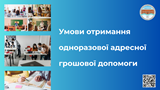 Запрошуємо вас ознайомитися з умовами отримання одноразової адресної грошової допомоги.