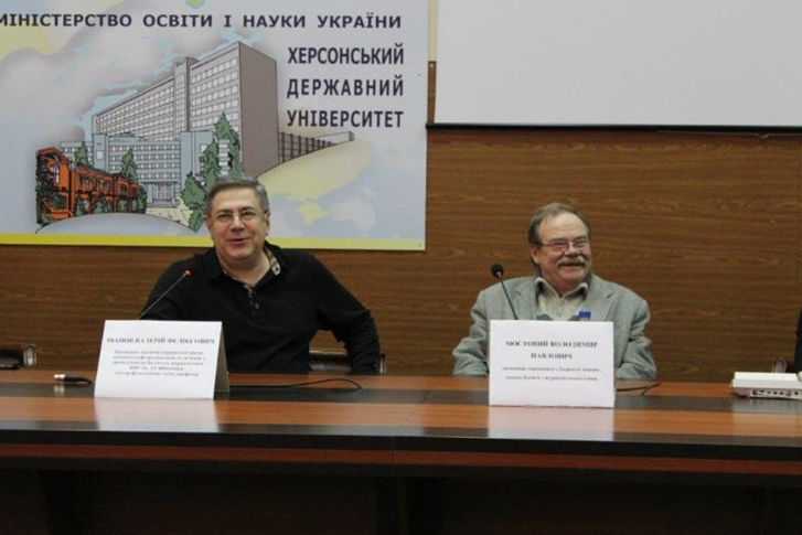 19 лютого до Херсонського державного університету завітали поважні гості – члени Національної спілки журналістів України: Валерій Іванов, президент Академії української преси, доктор філологічних наук, професор Інституту журналістики Київського національного університету імені Тараса Шевченка; Володимир Мостовий, засновник тижневика «Дзеркало тижня», голова Комісії з журналістської етики; Сергій Томіленко, в. о. голови НСЖУ; Анатолій Жупина, головний редактор незалежної газети Херсонщини «Новий день».