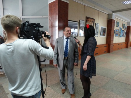 По – друге, всі бажаючі змогли приміряти на себе «національні костюми» українця та україночки напередодні Всеукраїнського свята вишиванки, вставивши обличчя у отвір плаката - фотографії жінки та чоловіка в національному українському костюмі. Не втрималися від фото на пам'ять в національному одязі проректор з навчальної та науково-педагогічної роботи, професор Тюхтенко Н.А. та декан факультету культури і мистецтв, професор Левченко М.Г.