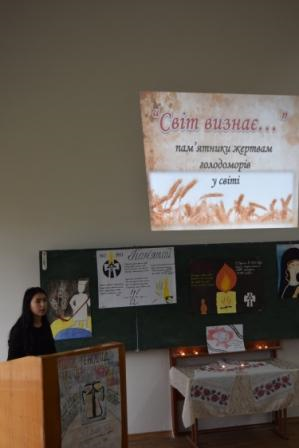 В рамках заходу студенти-першокурсники продекламували низку поезій із циклу «Голод» Олександра Олеся (Бондаренко Т., Нестерєва О.), поезії Наталі Тривайло «Полум’я скорботи» (Фесик Д.), Віталія Савчука «Вечеря» (Авакемян А.), якими загострили увагу аудиторії на трагедії народу. Аматорський театральний колектив студентів першого курсу під керівництвом Харитонової Катерини здійснив постановку уривку із роману В. Барки «Жовтий князь», актори надзвичайно емоційно передали проблематику та трагедійність твору.