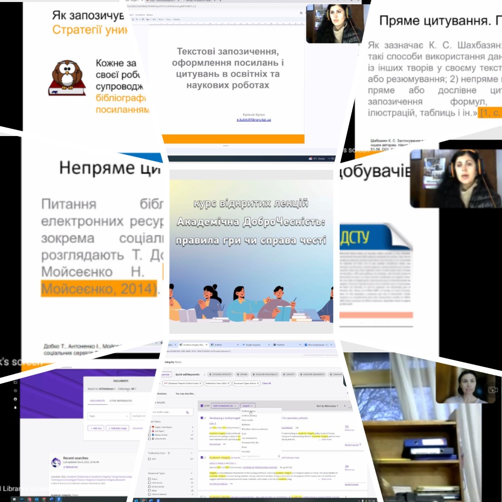 On November 8, 2023, employees of the KSU Scientific Library joined the webinar "How to properly arrange borrowing from other sources" from KPI named afterIgor Sikorsky.The event took place within the framework of the course of open lectures "Academic Honesty: the rules of the game or the matter of honor".