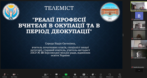 Надія Середа – вчитель початкових класів, спеціаліст вищої категорії, старший вчитель, учитель-методист Зеленівської загальноосвітньої школи І-ІІІ ступенів №38 Херсонської міської ради, відмінник освіти України. Вона поділилася зі студентами та викладачами педагогічного факультету досвідом роботи з дітьми очно протягом 2 років. Під час окупації селища це була підпільна школа, а після деокупації – освітній простір для дітей у власному будинку.
