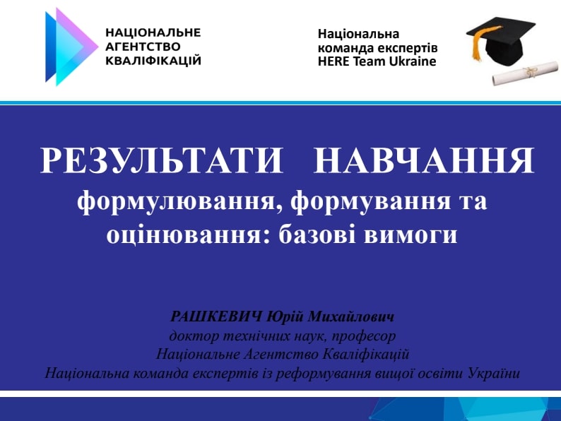Спікерами онлайн-тренінгу виступили Світлана Калашнікова (Інститут вищої освіти НАПН України, Національна команда з реформування вищої освіти), Юрій Рашкевич (Національне агентство кваліфікацій, Національна команда з реформування вищої освіти), Володимир Бахрушин (Національний університет “Запорізька політехніка”, Національна команда з реформування вищої освіти), Олена Оржель (Інститут вищої освіти НАПН України) та Олена Єрмошкіна (Національний технічний університет “Дніпровська політехніка”).