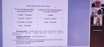 Здобувачі й здобувачки були ознайомлені з термінами проходження практики, вимогами до звітної документації, порядком оформлення заліку тощо.