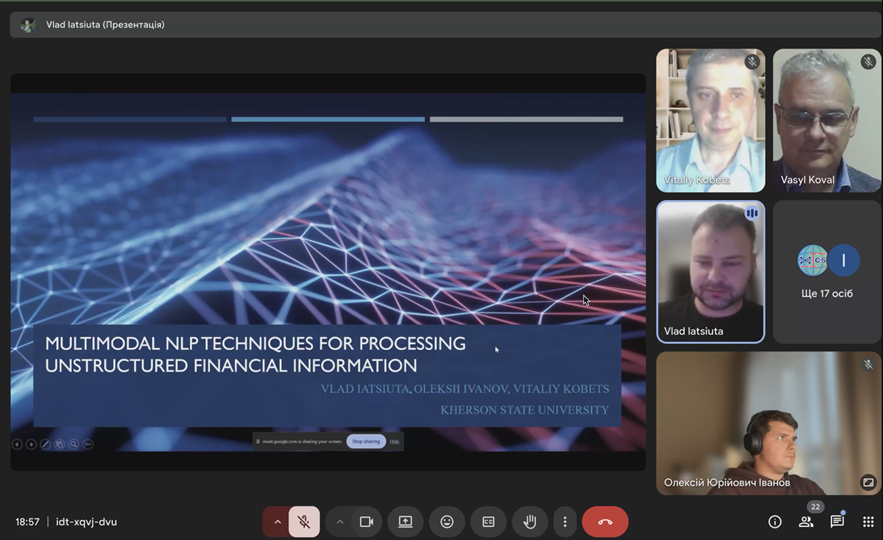 Також Яцюта Владислав та Іванов Олексій, успішно представили результати своїх досліджень. Їхня спільна доповідь, підготовлена разом із професором Кобцем, була присвячена темі: "Multimodal NLP Techniques for Processing Unstructured Financial Information".