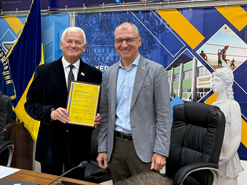 Варто зазначити, що минулого тижня було підбито підсумки державної атестації у частині впровадження наукової (науково-технічної) діяльності за науковим напрямом «Природничо-математичний». Перший проректор ХДУ Сергій Омельчук долучився до участі у презентації результатів державної атестації українських ЗВО за двома напрямами – «Природничо-математичний» та «Інженерно-технологічний», що відбувалася в Одесі на базі Одеського національного університету імені I. I. Мечникова. У ході урочистого заходу перший проректор Сергій Омельчук передав ректору ХДУ Олександру Співаковському відповідний сертифікат про проходження університетом державної атестації в частині провадження наукової (науково-технічної) діяльності за науковим напрямом «Природничо-математичний».