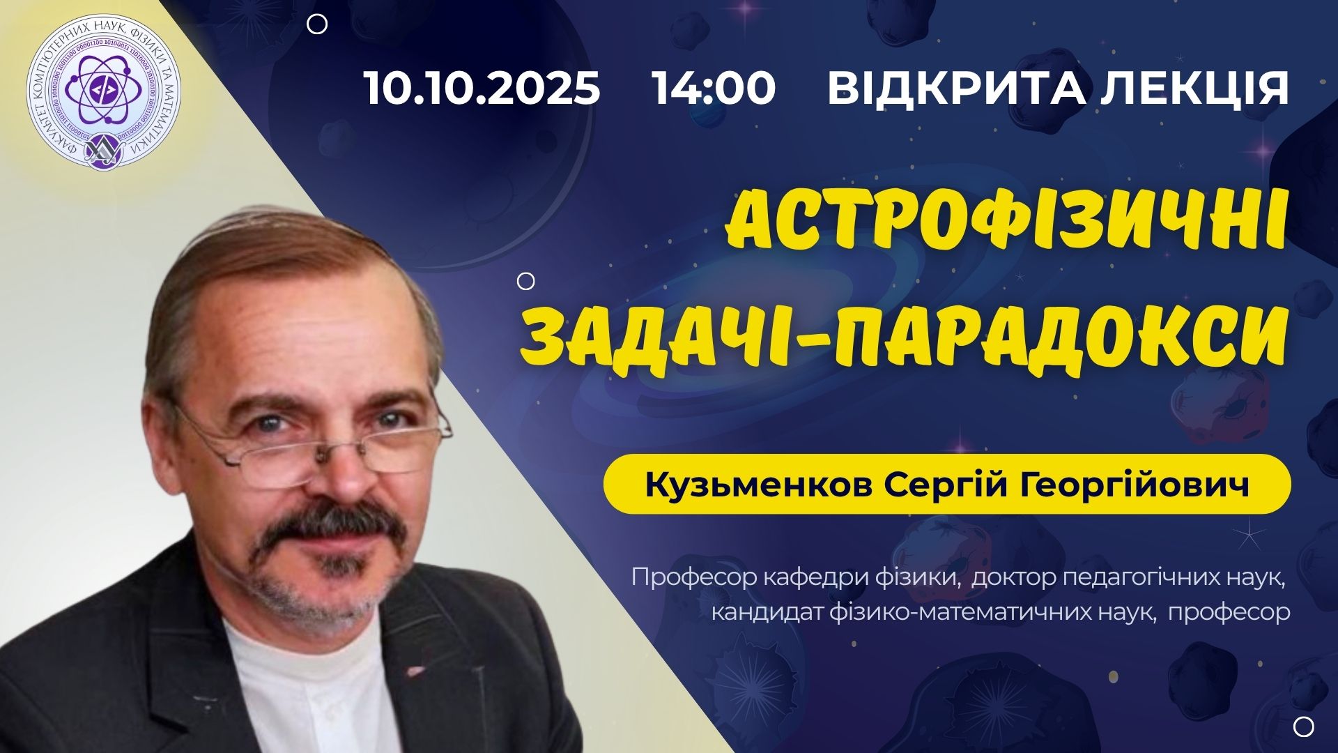 Ця лекція — чудова нагода поринути у світ сучасної астрофізики, де навіть прості питання можуть призводити до неочікуваних висновків. Кузьменкос С.Г. продемонструє задачі-парадокси, які кидають виклик нашому розумінню Всесвіту.