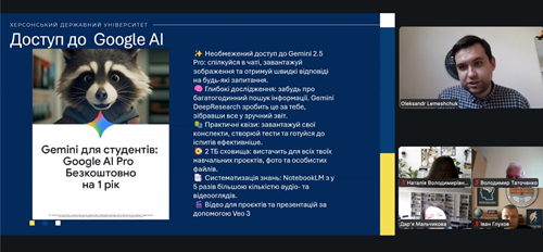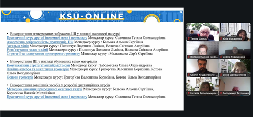 Засідання відбулося із запрошенням членів наглядової ради ХДУ, деканів факультетів, гарантів освітніх програм, науково-педагогічних працівників, проректора з цифровізації, інноваційної, інвестиційної діяльності та науково-педагогічної роботи Олександра Лемещука та провідної фахівчині відділу цифрової інфраструктури Анастасії Слизькоухої.