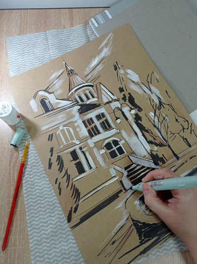 Здобувачі разом із викладачами обирали найкрасивіші краєвиди у Івано-Франківську і, попри дощову погоду, активно працювали над етюдами з різних локацій. Мальовничі куточки стали тимчасовими мистецькими студіями: студенти працювали з різних локацій, фіксуючи атмосферу, світло та деталі навколишнього середовища, виконували графічні урбаністичні скетчі.