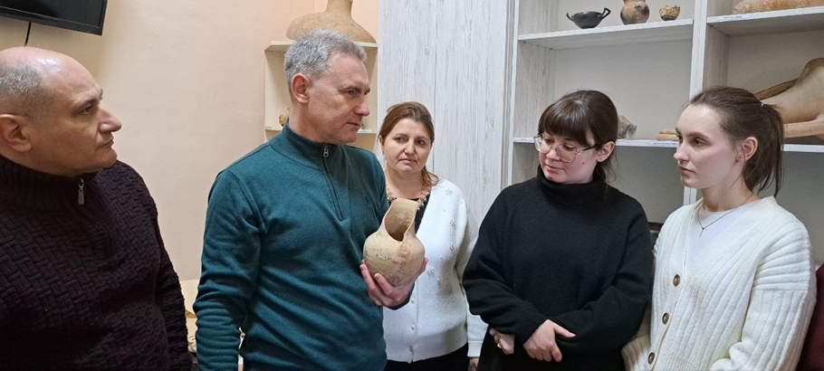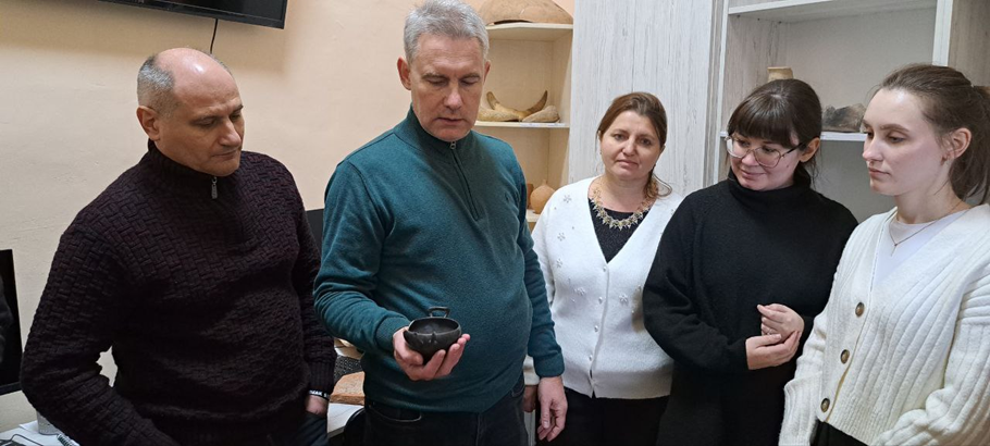 Після успішного захисту кваліфікаційних робіт, здобувачі другого (магістерського) рівня вищої освіти факультету психології, історії та соціології, спеціальностей 014 Середня освіта спеціалізація 014.03 Історія та громадянська освіта та 032 Історія та археологія, разом з викладачами кафедри історії, археології та методики викладання та головою атестаційної комісії відвідали Археологічний музей Херсонського державного університету. Нагадаємо, що безцінні експонати під час війни було врятовано і вивезено з Херсона до Івано-Франківська. Відвідувачів радо вітав завідувач музею, професор кафедри Олександр Вікторович Черемісін, який розповів про культуру, побут та вірування древніх цивілізацій, що здавна населяли Південь України. Розглядаючи артефакти, присутні також дізнались на яких городищах і поселеннях проводилися розкопки Археологічною експедицією ХДУ.