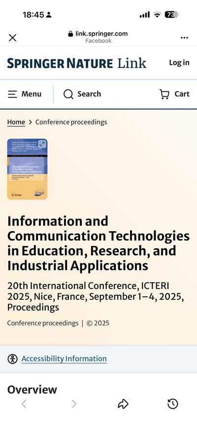 У видавництві Springer опубліковані результати міжнародної наукової конференції ICTERI 2025, що відбулася у вересні в Ніцці на базі Université Côte d’Azur. Про це повідомив ректор ХДУ Олександр Співаковський.