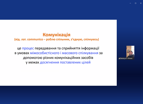 Під час лекції учасники дізналися, що таке комунікація, чим вона відрізняється від простого інформування, які елементи складають комунікаційний процес і які бар’єри можуть заважати ефективному передаванню повідомлень. Особливу увагу приділили видам внутрішніх комунікацій та їхньому значенню.