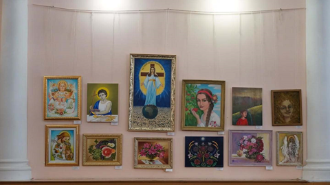 На виставці були представлені роботи з евакуйованих фондів Херсонського державного університету, серед яких – картини талановитої художниці Світлани Брагіної.