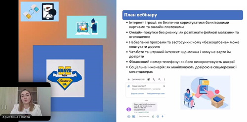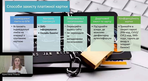 Захід відбувся в межах співпраці з Національним банком України та освітньою платформою «Талан». Спікеркою вебінару стала Христина Плюта, менеджерка відділу протидії електронному та картковому шахрайству Департаменту банківської безпеки АТ «КРЕДОБАНК».