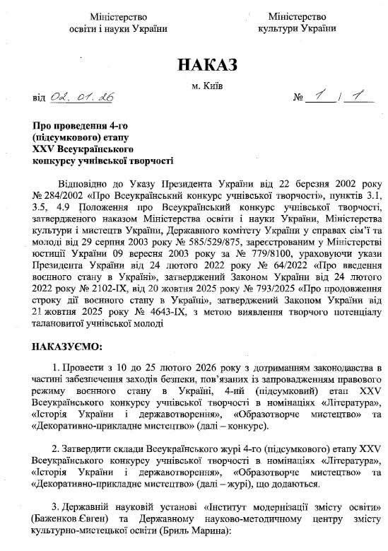 In accordance with the order of the Ministry of Education and Science of Ukraine and the Ministry of Culture of Ukraine on the holding of the 4th (final) stage of the XXV All-Ukrainian Competition of Student Creativity, which took place during February 10 - 25, 2026, Professor of the Department of History, Archaeology and Teaching Methods Oleksandr Cheremisin was included in the jury. Mr. Oleksandr joined the jury in the nomination "History of Ukraine and State Building". Participation in the jury for Oleksandr Viktorovych became an important component of expert activity in the final stage of the competition, which is aimed at supporting the creative and intellectual potential of student youth."Participation in the jury's work is also evidence of trust in the professional expertise of historians of Kherson State University and at the same time demonstrates the active participation of the university's historical school in supporting students' scientific initiatives. Such competitions play an important role in popularizing historical knowledge, forming a culture of research thinking, and supporting those who may join the ranks of professional historians in the future," noted Oleksandr Cheremisin.