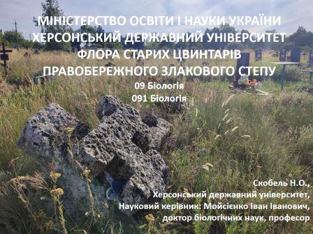 31 березня 2026 року о 14.00 на кафедрі ботаніки відбудеться фаховий семінар (передзахист), де буде попередньо розглянута дисертаційна робота Скобель Надії Олегівни " Флора старих цвинтарів Правобережного Злакового Степу ", на здобуття наукового ступеня доктора філософії за спеціальністю 091 Біологія з галузі знань 09 – Біологія