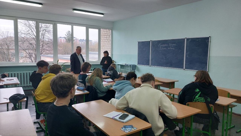 В межах очного тижня, 31 березня 2026 року, в ліцеї №2 Івано-Франківської міської ради викладачка факультету Олена Василівна Казаннікова, працівниця університету Олександра Олексіївна Поспєлова та здобувачка 101 групи Марія Міліціна провели профорієнтаційний захід.