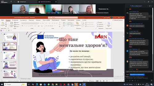Під час заходу розглянуто сутність ментального здоров’я як важливої складової загального благополуччя особистості. Зокрема, акцентовано увагу на здатності людини усвідомлювати власні емоції, ефективно справлятися зі стресом, підтримувати соціальні зв’язки та зберігати відчуття цінності власного життя.