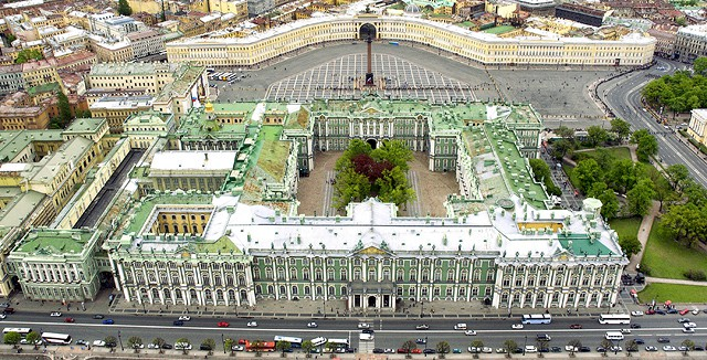Основная экспозиционная часть музея занимает пять зданий, расположенных вдоль набережной реки Невы в центре Санкт-Петербурга, главным из которых принято считать Зимний дворец.