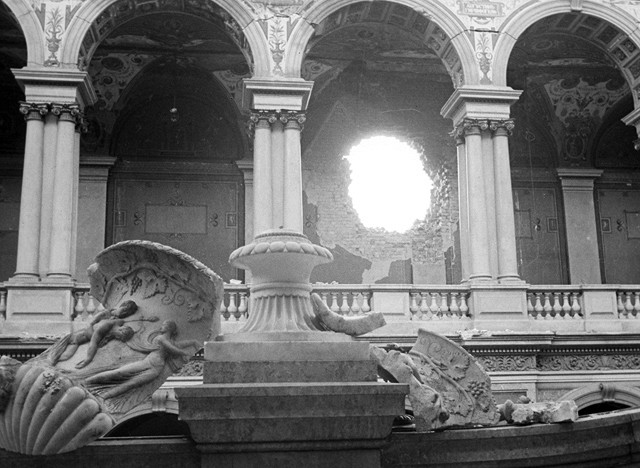 На фото: Здание Государственного Эрмитажа после обстрела фашистами. Великая Отечественная война 1941-1945годов.