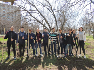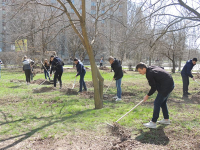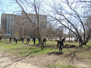 Ініціативу з прибирання університетської території підхопили студенти всіх факультетів ХДУ. Молодь, озброївшись необхідним знаряддям праці, прибирали прилеглу територію навчального закладу, пересаджували многолітні рослини, квіти, кущі.