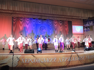 Відкрили концертну програму в актовій залі в.о.ректора ХДУ Наталія Тюхтенко та проректор із наукової роботи Сергій Омельчук. Наталія Анатоліївна побажала учасникам та гостям фестивалю здоров’я, успіхів та миру, а Сергій Аркадійович – успішно вписатися в літопис життя Херсонського державного університету та рухатися не лише в науковому, а й соціально-гуманітарному напрямі.